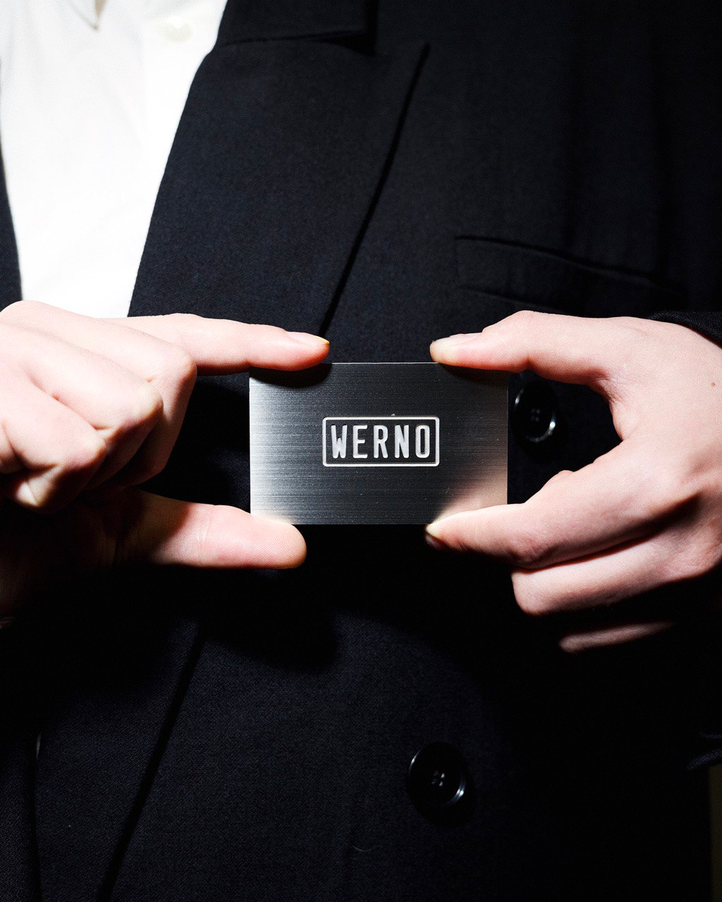 Персональная карта, сделанная из металла, с брендированной печатью барбершопа, изображением номера телефона и карты.
